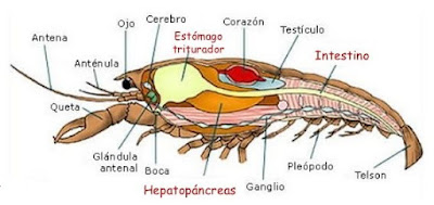 b) Abdomen; presenta un número variable y elevado de segmentos. Sus apéndices son pequeños y no participan en la locomoción. Terminan en una pieza fusionada llamada telson y dos urópodos que ayudan el la reproducción.